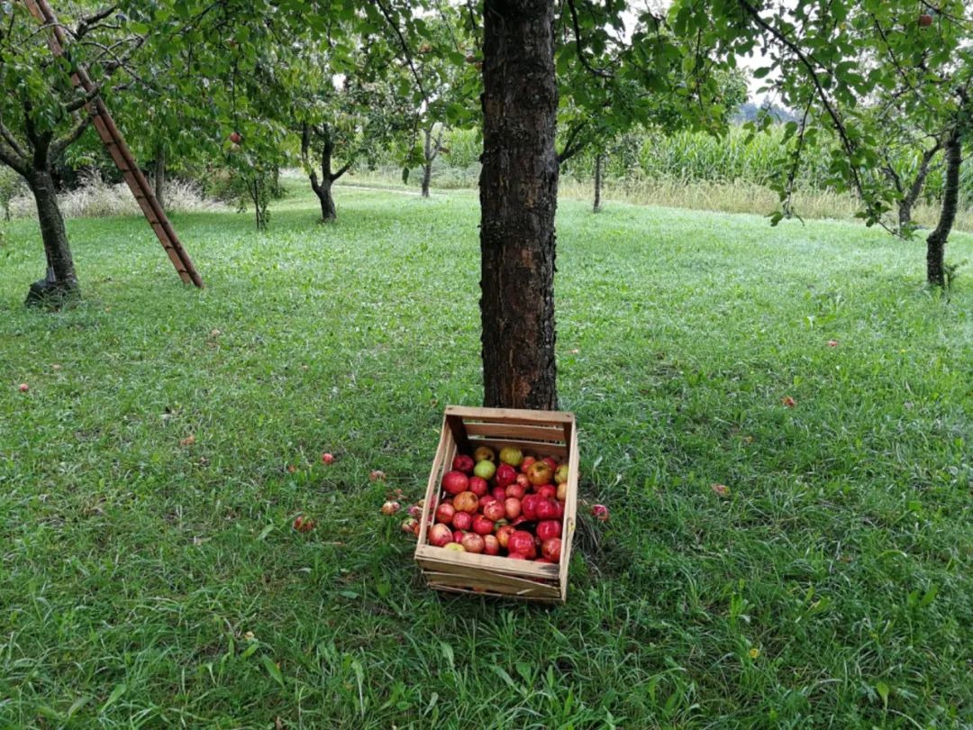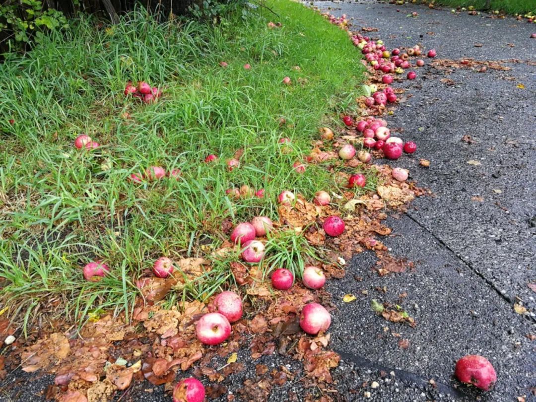 到了秋天時,蘋果樹下便是滿地的果子。這些蘋果沒有拿去賣,自己家也吃不完,所以路人走過,順手摘上兩個,村民也完全不介意。