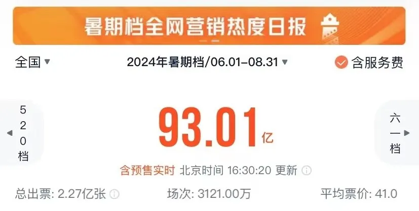 根據網絡平台燈塔專業版的實時數據,截至8月13日16時30分發稿前,2024年暑期檔(6月—8月)檔期總票房(含預售)突破93億元。事實上,根據目前趨勢和新片定檔計劃來看,今年暑期檔票房很有可能產生歷史性倒退,而在客觀的市場遇冷之外,更嚴重的情況是觀眾的主觀退場以及輿論黑手的陰謀。