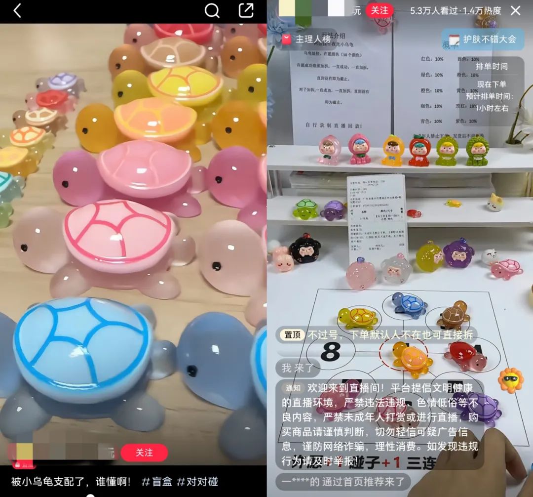 這便是當下爆火的烏龜盲盒直播間中最尋常的一隅。