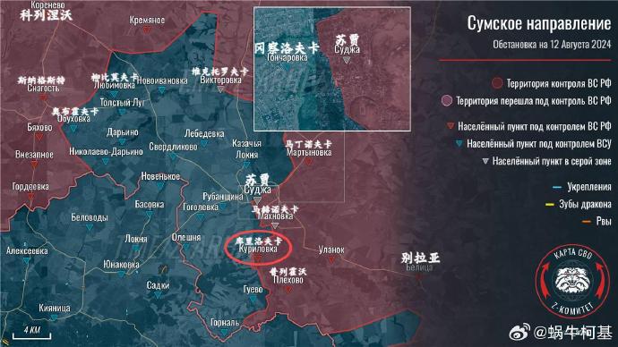 ❗️🇷🇺🇺🇦 截至 2024 年 8 月 12 日 19 點烏克蘭進攻庫爾斯克情況