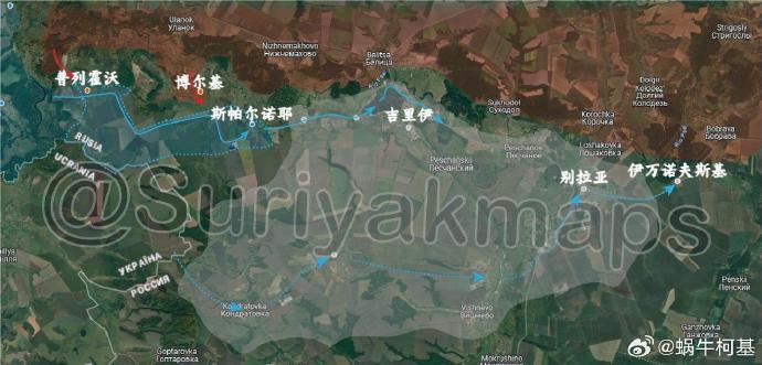 3、別拉亞:在佔領了普列霍沃的大部分地區後,烏克蘭軍隊佔領了斯帕爾諾耶,並繼續向內陸推進,穿過克魯佩茨和卡米什諾耶到達吉里伊,在那裏遭受了重大損失。前一天也發生了類似的事情,烏克蘭部隊穿過了康德拉托夫卡、奧克謝爾基、維什涅沃、小索爾達茨科耶、別拉亞和伊萬諾夫斯基等地區,然後被俄羅斯軍隊擊退。該地區仍然是一個沒有雙方鞏固存在的大片灰色地帶。