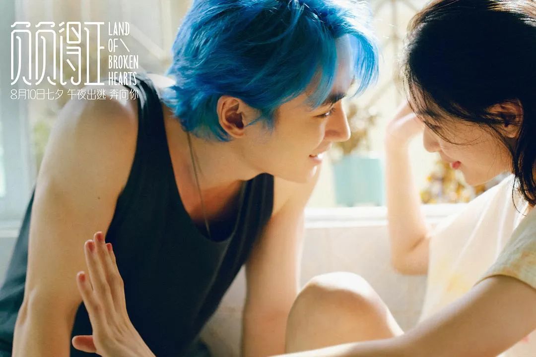 時尚是一個輪迴,這套復古的錄像帶美學,被《負負得正》重新盤活了。藍髮的朱一龍、紅髮的邱天,被拍出別樣韻味。不得不説,《負負得正》是一部顏控友好型電影。電影裏的每一個演員,都展現出不同以往、甚至是超預期的魅力。