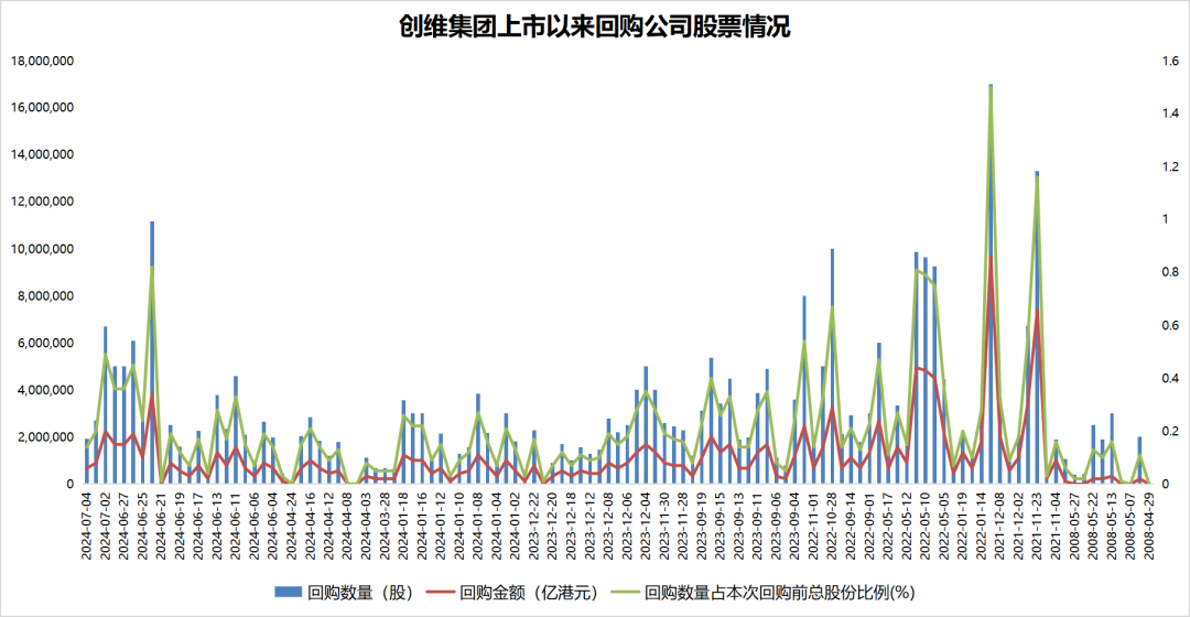 根據Wind數據顯示,2023年8月31日至2024年7月4日,創維累計回購公司股票約1.92億股,累計回購金額5.82億港元,佔公司總股本的8.02%。