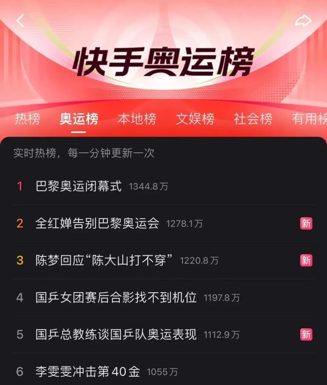 抖音、快手等平台中也時常有多種運動員相關的二創視頻“出沒”,如王楚欽撞臉主持人於洋;許昕還是太全面了;國羽除了梁偉鏗都去看演唱會了;00後運動員整頓賽後採訪等熱梗橫行,巴黎奧運會也因此被稱為最有“樂子”的一屆奧運會。