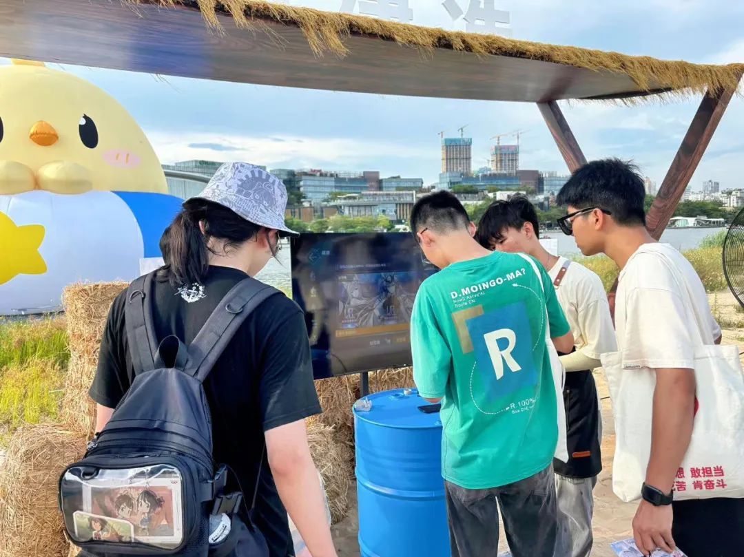 正式的活動場地,《碧藍航線》放到了沙灘上,穿過立牌引導的樹林,來到眼前的,是沙灘上的“AZUR LANE 夏日清涼小鎮”,其中佔據最大面積的,是各式各樣的小遊戲互動區域,通過遊玩小遊戲完成目標,可以在集章冊上集章,達到一定數量後,就可以去兑換相關周邊物料。