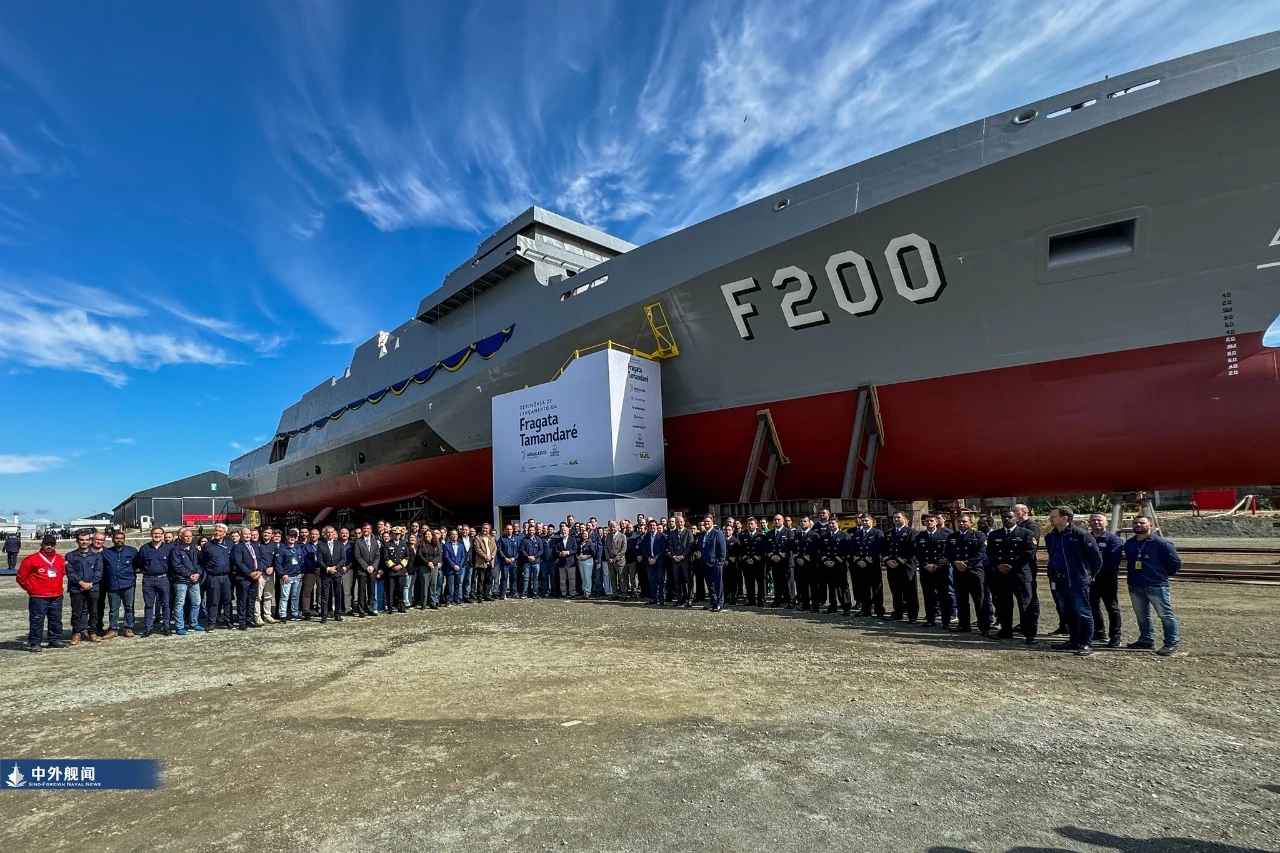 巴西國防部消息,當地時間8月9日,巴西海軍首艘“塔曼達雷”級護衞艦“塔曼達雷”號(BNS Tamandaré F-200)在巴西聖卡塔琳娜州伊塔賈伊市的德國與巴西合資造船廠“蒂森克虜伯-巴西南方造船廠”(thyssenkrupp Estaleiro Brasil Sul)舉行下水儀式,巴西總統路易斯·伊納西奧·盧拉·達席爾瓦、國防部部長何塞·穆西奧·蒙泰羅·菲略出席儀式,國防部部長穆西奧的妻子維拉·布倫南德作為該艦的教母為該艦擲瓶。