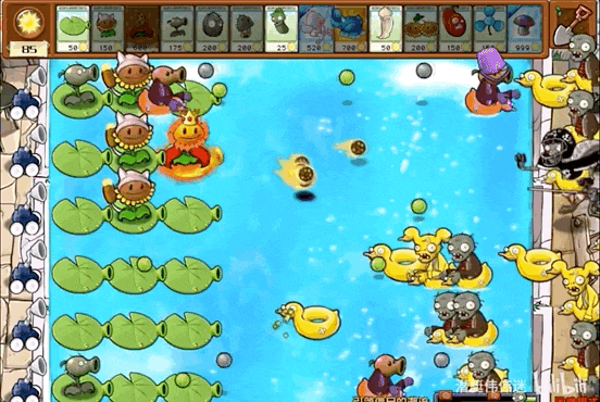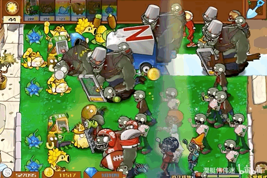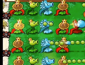 單獨出現的三線機槍射手如果還是顯得單薄,就拿滿屏豌豆射手抵禦殭屍的攻擊,一旦屏幕被巨型豌豆射手鋪滿,那麼這場遊戲便沒有感情,全是武器。