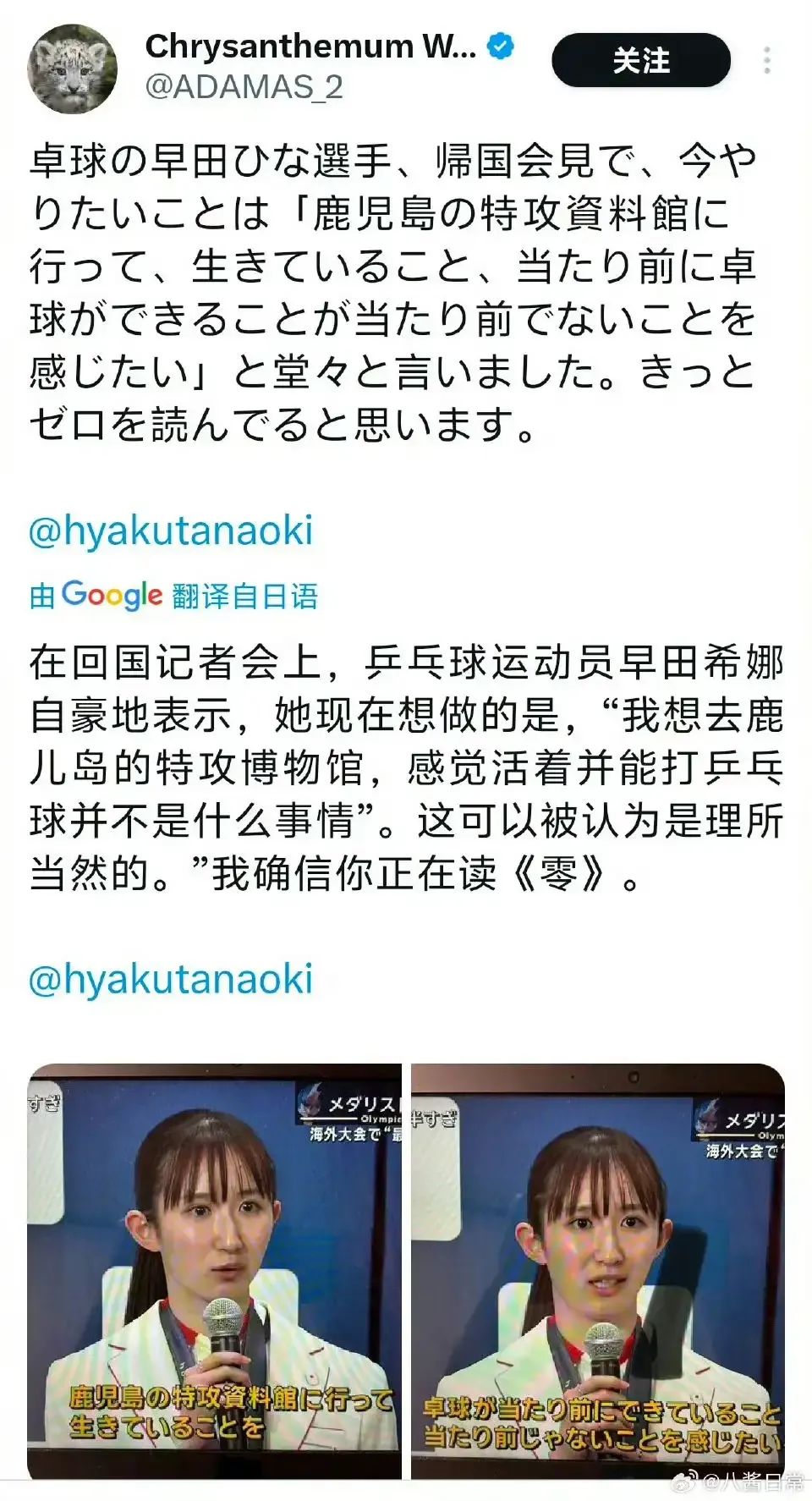 對了,早田希娜要去參觀的那個,叫做“鹿兒島特攻博物館“,記念的是二戰中喪心病狂的“神風特攻隊”,在全世界範圍內,反法西斯都應當是最高的共識,只有日本人——他們依然把法西斯戰犯奉為“民族英雄”。