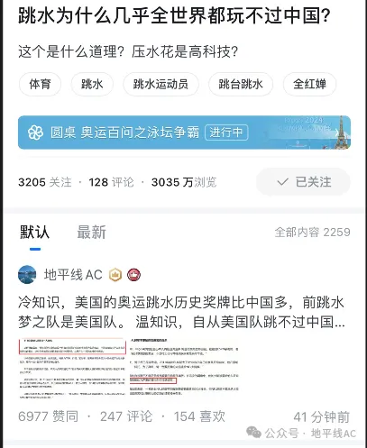 在本次奧運會跳水項目進行的時候,某乎上就出現了一個熱門問答,總瀏覽幾千萬次一直在持續推流。
