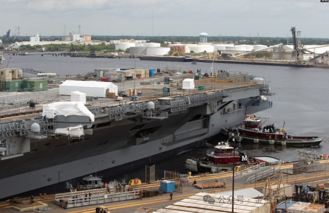2020年8月停靠在諾福克海軍造船廠喬治 H.W.布什號航空母艦。(圖源:美國海軍)