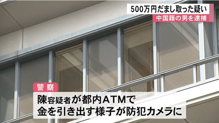 接到報警的日本警方聽完大爺的敍述,估摸着這人肯定得去取錢,於是便調取了監控錄像。並在東京的ATM監控攝像頭上看到嫌疑人陳某提取現金的畫面。