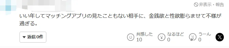 一把年紀了,還是沒見過面的相親對象,金錢欲和性慾膨脹,太不像話了。