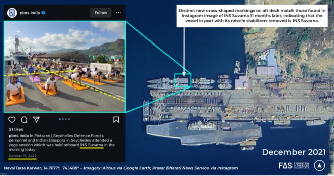 印度海軍軍艦上練瑜伽的畫面最終還是印度海軍自己揭開了答案——雖然是通過泄密的方式。美國核安全研究人員通過印度海軍發佈的瑜伽練習照片發現,2022年10月,“蘇瓦爾納”號巡邏艦在訪問塞舌爾時就組織了全艦艦員搞瑜伽鍛鍊,印度海軍發表的照片表明它的後甲板已經拆除了“丹努什”導彈發射裝置,作為佐證的是,此後該艦再也沒有發射“丹努什”導彈的消息。