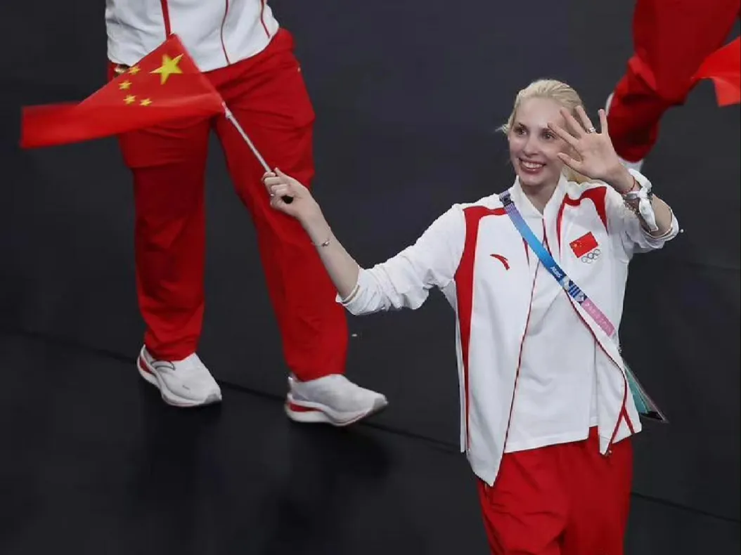 巴黎奧運會閉幕式上,她手中揮舞五星紅旗,臉上笑容温暖純真。網友形容“就像精靈女王在和粉絲打招呼”。