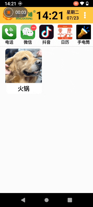 除了一鍵視頻通話,平安通手機也支持自定義一些應用常駐,比如愛刷抖音的爺爺奶奶們,就可以在主頁固定一個抖音 App。