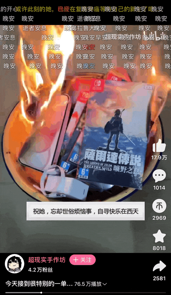 我這兩天老刷到燒紙的視頻。但給親朋燒Switch的視頻,還是着實硬控了我幾秒。