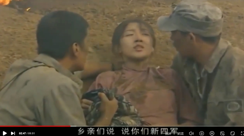 姑娘用盡最後的力氣解釋着:“還有兩個人,他們在路上犧牲了。鄉親們説……説你們新四軍是最好的……”