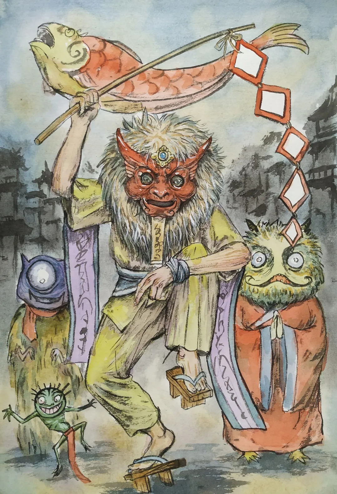 對於正常的世界,生和死都是特殊的,因為它們都在生命的邊緣,全世界的民俗中關於生與死的部分——生育、結婚和葬禮——都是最為繁複的。儘管如此,這裏的生與死依舊是秩序的一部分,屬於正常世界,因為所有的生死循環,都依舊處於秩序的世界之中。但那些非常的死亡卻充滿戾氣,讓人覺得害怕。在古代世界裏,戾氣是對正常秩序具有極大威脅的存在。在人類的死亡方式中,橫死、暴死者被認為會成為怨靈、厲鬼,他們都有非常重的戾氣,會對現實世界的正常秩序構成破壞,所以,需要把他們供起來,用祭祀消除這份戾氣。在日本歷史上,平將門、菅原道真、崇德上皇被稱為日本中世三大怨靈,他們的死都充滿怨憤,並在死後受到非常高規格的供奉,這在日本學界被稱為“怨靈信仰”。和怨靈類似的觀念,在古代中國同樣也是存在的。我所研究的節日傳説中,舉凡屈原、伍子胥、介子推這些與節日相關的歷史人物都是橫死者,他們或死於水火,或死後身首異處、屍身不整。中國古代的軍神,從蚩尤到關羽到岳飛,也都是橫死者,並且屍身不整。這一切並不是偶然的。所以付喪神和普通的物化為妖不同,他們是妖中的厲鬼,櫻花羣妖宴上滿滿的血腥氣息即來源於這份戾氣。存在於各地的看似同質的妖怪世界中,其實存在着不同級別的妖怪,而對人類秩序的破壞能力,正是普通的妖怪和付喪神這樣的妖怪之間的差別所在。