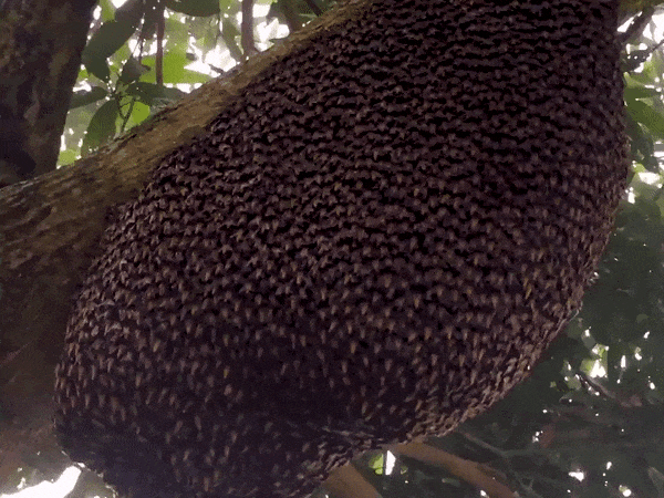 大蜜蜂(Apis dorsata)是廣泛分佈於南亞及東南亞的品種,喜歡在離地面很高的露天處築巢,這使得它們十分容易暴露在危險之中。於是,大蜜蜂發展出了一種神奇的“閃爍”技能,可以嚇走不少入侵者。