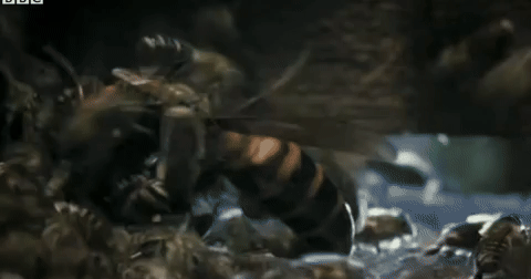 蜜蜂一擁而上包裹住胡蜂,形成“蜂球”|圖源:BBC Earth