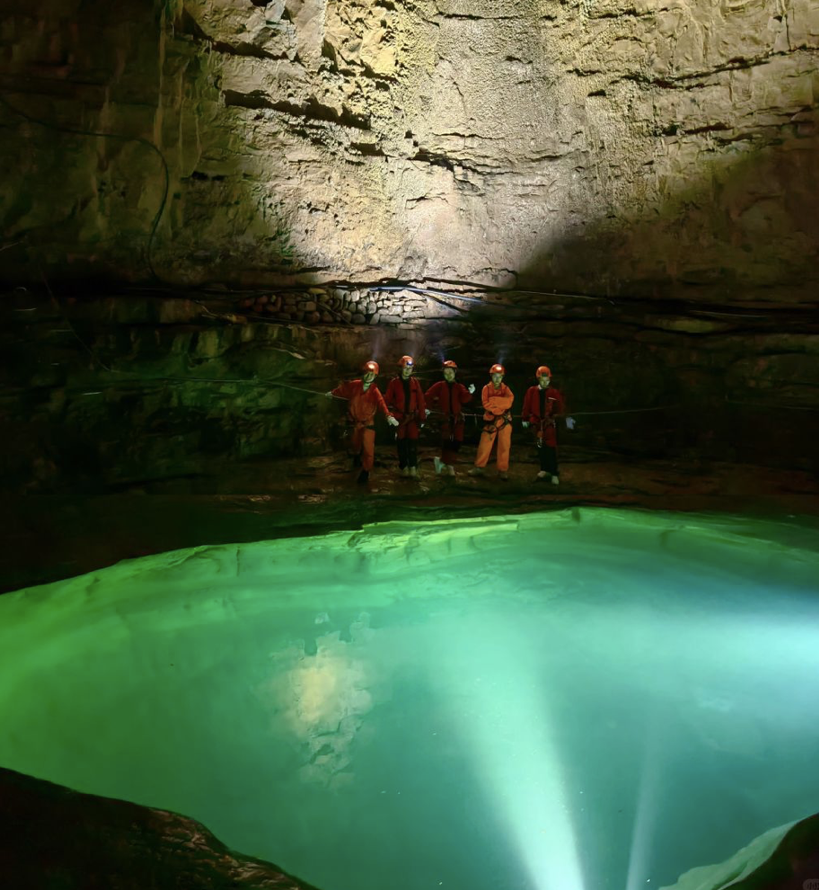 要是覺得天坑沒意思,貴州還有“洞穴跳樓機”,27米洞穴蹦極——當然對比天坑項目也看得出來,“洞穴蹦極”的難度小了很多,小孩子也可以體驗。