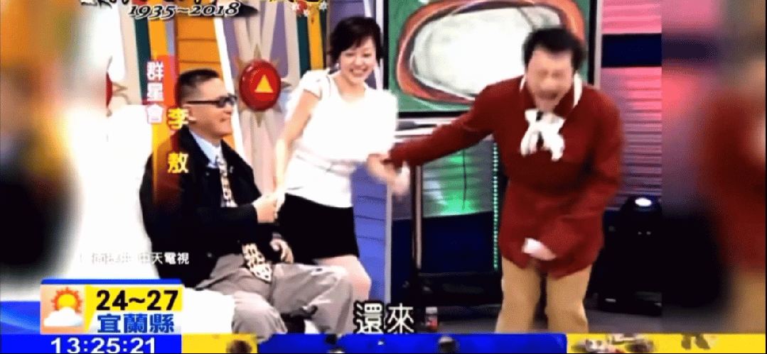 小s一屁股坐在了台灣作家李敖的大腿上,從此開啓了s姐對男嘉賓上下其手的序幕。