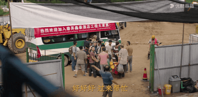 一行人扛着大包小包從悶着灰的大巴車魚貫而下,來到漫天沙塵的工地中。