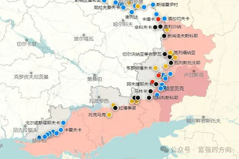 那麼,我們再來看看第二張圖。這是俄烏在盧甘斯克等四個地區的戰場態勢。