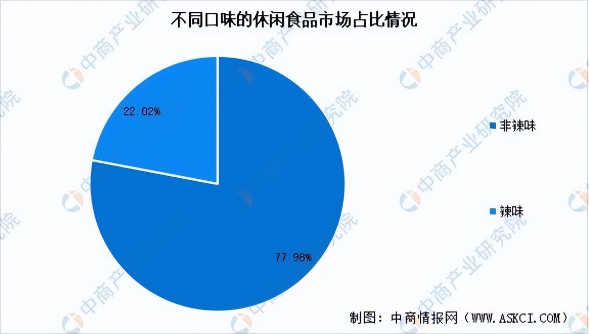整體來看,辣味休閒市場的發展規模較為龐大。根據中商產業研究院發佈的《2024-2029年中國休閒食品業深度分析及發展趨勢預測報告》,2023年我國辣味休閒食品市場規模達2045億元,佔整個休閒食品市場的份額為22.02%。