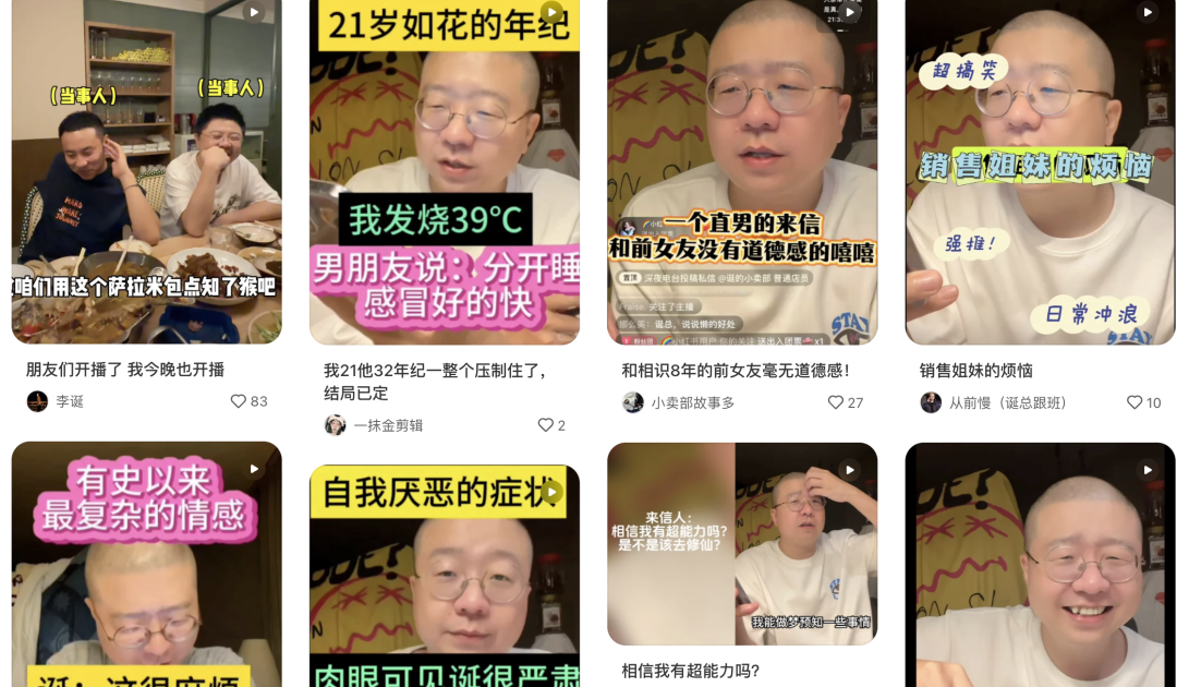 一些姐妹遇到些煩心事,寫信給李誕求指導。他會挑選一些在直播中讀出來,給出一些情感建議。