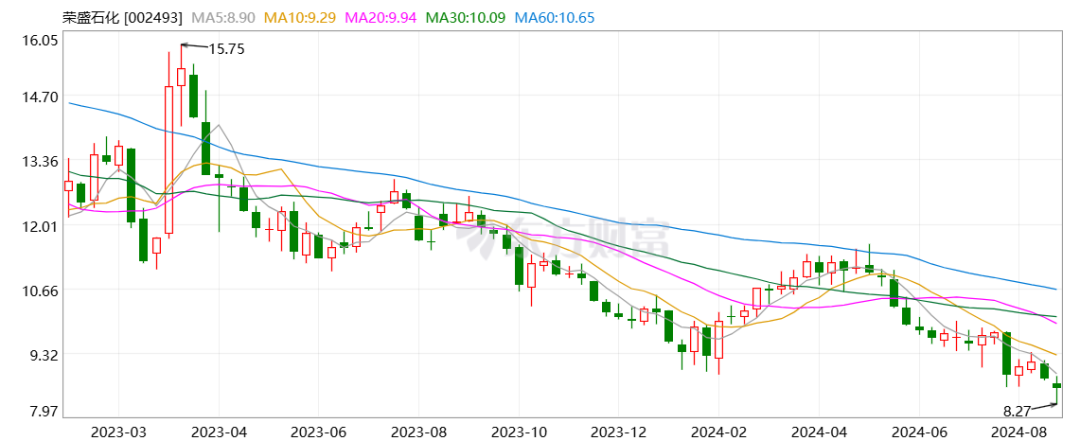 這條收購消息一出也的確轟動一時,但榮盛石化股價高潮持續沒多久,就掉頭向下,一路頭都沒怎麼回。