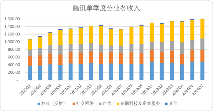 圖:騰訊單季度分業務收入(億元),來源:企業財報,錦緞整理