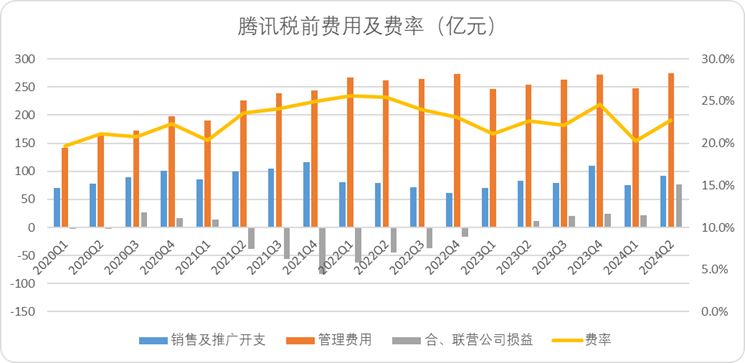 圖:騰訊費用及費率趨勢,來源:企業財報,錦緞整理