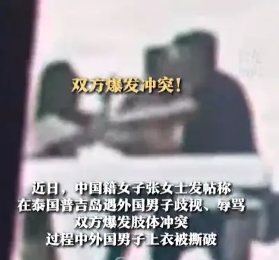 視頻拍攝於泰國。據張女士説當時她在泰國普吉島遇到一名外國男子,該男子對他歧視,辱罵,後來雙方更是爆發肢體衝突。