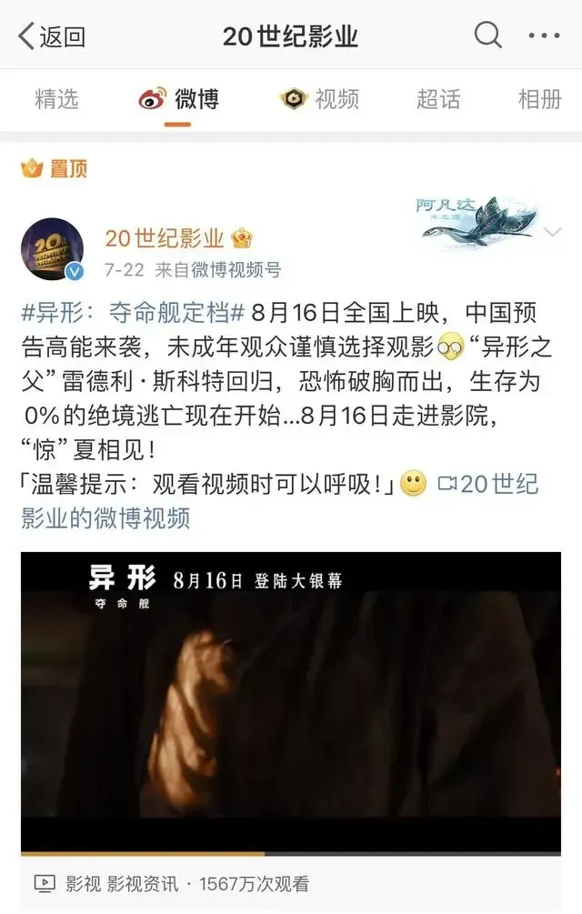 8月18日,相關討論進一步升温,形成兩大熱點話題:“各大影院回覆異形新片取消放映傳言”和“異形嚇壞小孩網友呼籲電影分級”。
