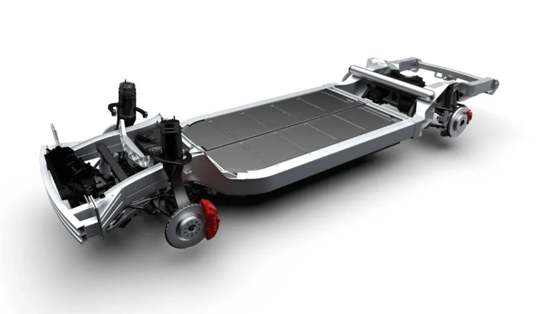 通俗來講,它就是將電池、電機、電控以及線性制動和轉向等部件提前整合到底盤上,實現車身和底盤的上下解耦。這種設計從一定程度上可以提升車輛底盤的集成度和平整度,外觀看起來更接近一個滑板,故而得名“滑板底盤”。