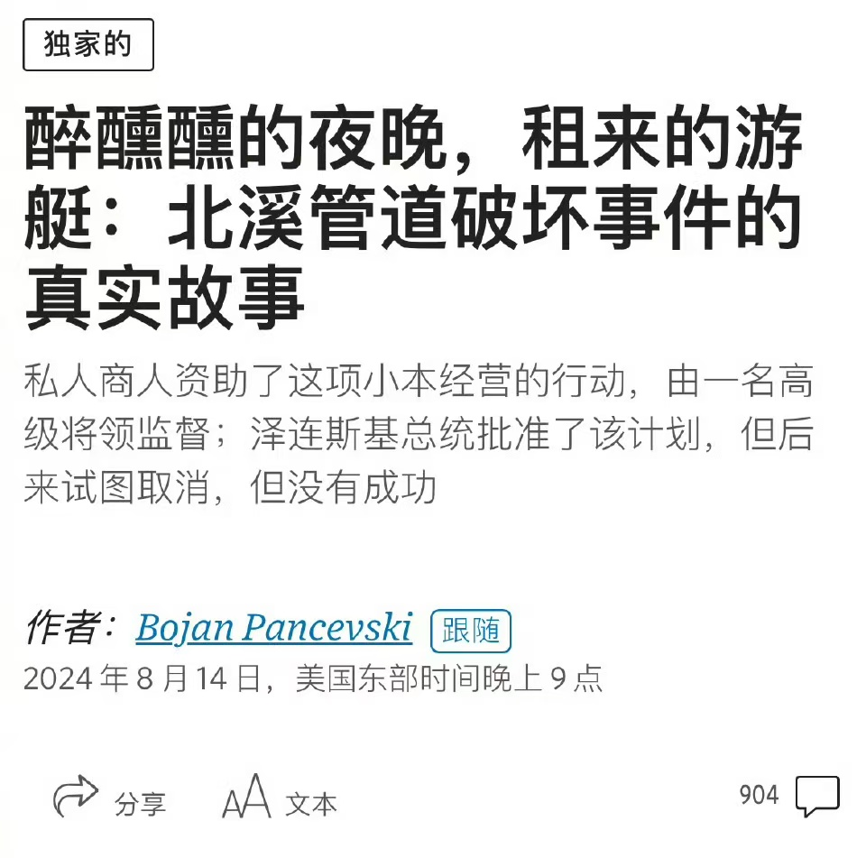 直到今年8月14日,美國《華爾街日報》刊登的一個長文,基本還原了炸北溪的全貌,算是目前各種説法中,細節最為清晰的一個了。