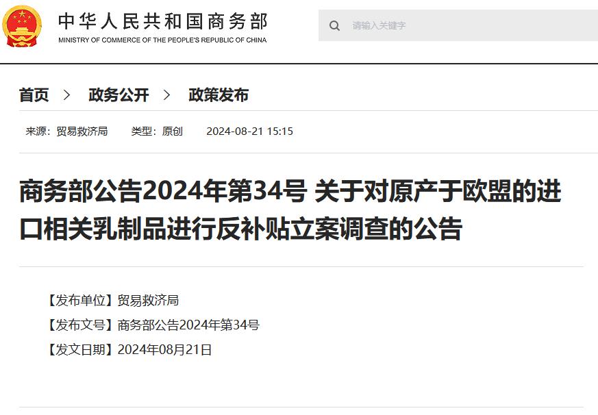 對於歐盟政客搞出這些套路,中國也有應對辦法,對歐盟產的乳產品進行調查。