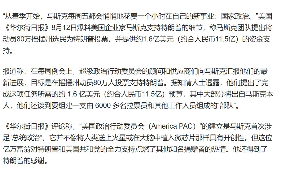 這次馬斯克替特朗普站隊,西方主流媒體的罵聲是很大的。筆者雖然寫過不少關於馬斯克的文,但是之前也沒想到站隊會這麼明顯。