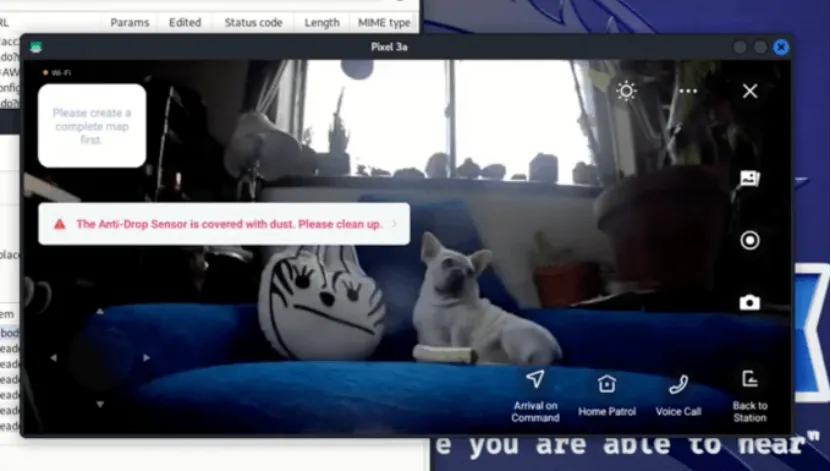 通過被黑客入侵的 Ecovacs 設備看到的一隻狗。(來源:Giese 和 Braelynn)