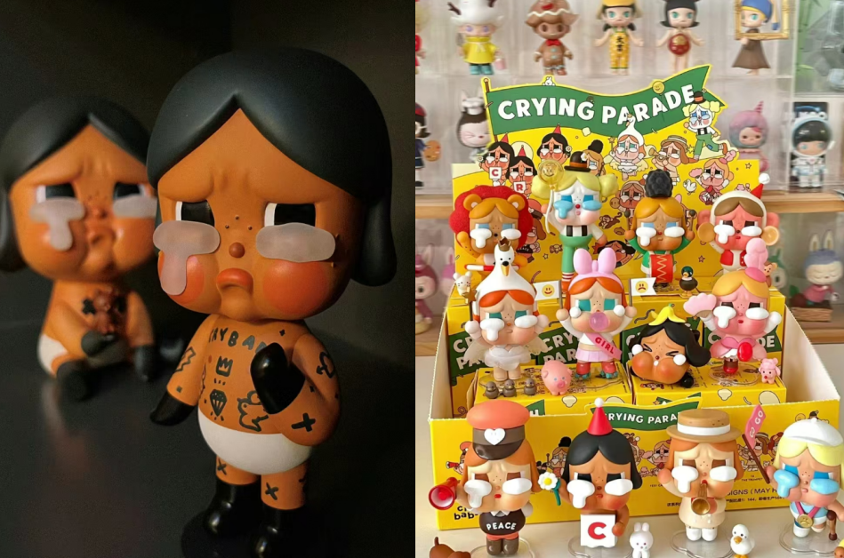 除了將“頂流”IP們帶出國門以外,泡泡瑪特專門與所在國或具有相同文化背景的設計師和藝術家合作簽約。比如在泰國,泡泡瑪特挖掘當地藝術家打造了全新IP CRYBABY,兩顆淚珠讓人愛不釋手。