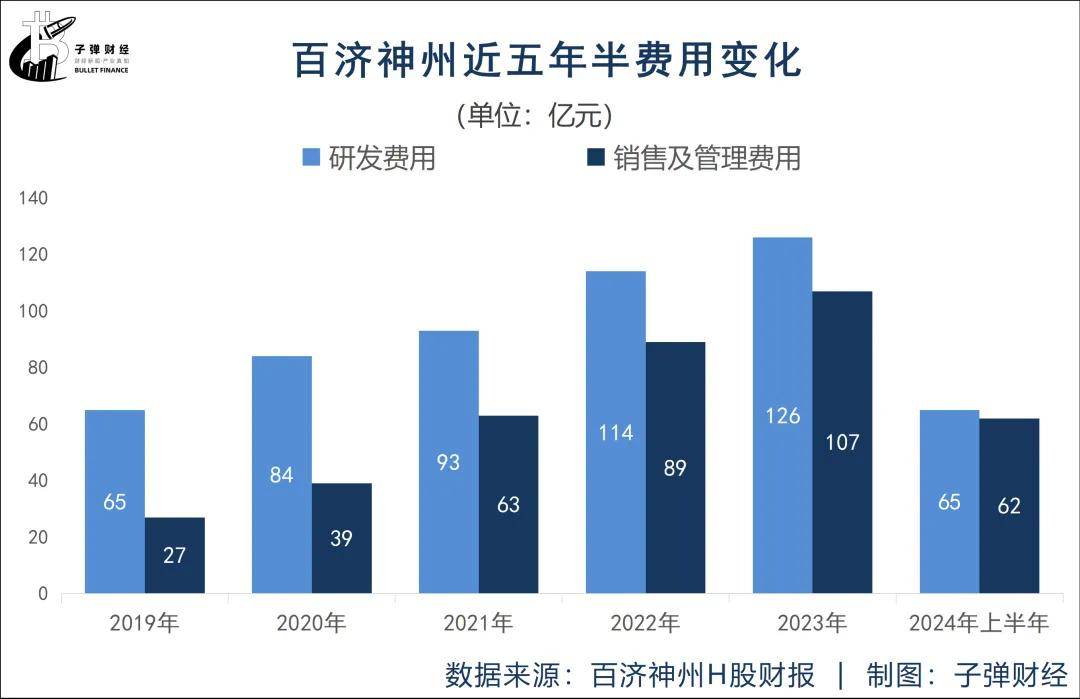 拉長時間來看,近六年,百濟神州營收規模不斷擴大,從2019年的30億元增長至2024年上半年的120億元,2024年上半年營收已相當於2023年全年營收的近七成。