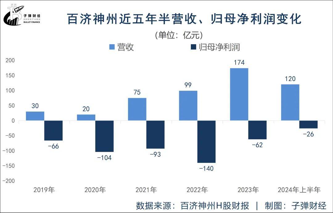 但百濟神州虧損問題仍然待解。2019年至2024年上半年,百濟神州已累計虧損491億元。