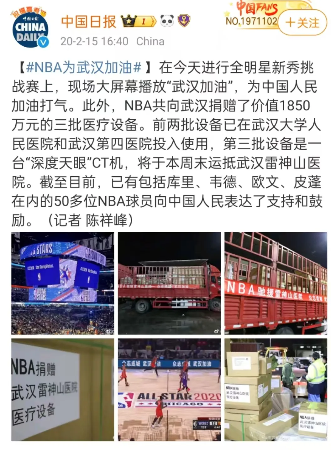 後來在我們眾志成城抗疫期間,NBA捐款協助我們抗疫,試圖挽回與中國的關係,當時往復的金錢和物資協助,總價值超過1850萬元。