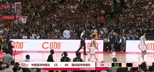 ● 比賽第一節,國際籃球明星隊就以46∶15領先