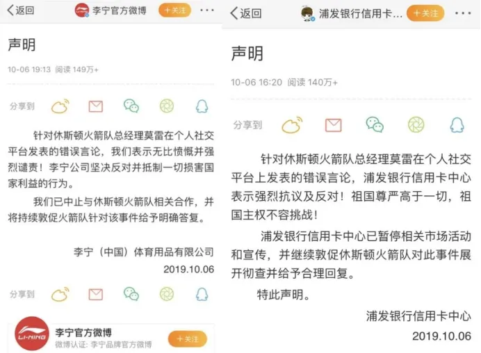 這在國內引起了眾怒,隨即,NBA被抵制,緊接着比賽轉播暫停,贊助商宣佈解約,中國商城內的NBA周邊商品也同時下架。