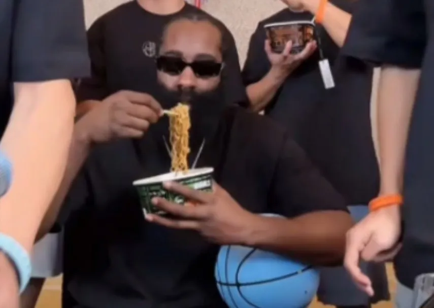 哈登更不必説,在直播間見識到中國速度後,直接興奮地舞了起來,並且狂炫泡麪,一點沒架子。