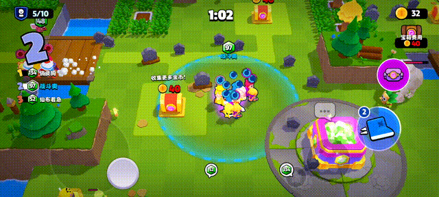 最後是高爽感。在單局循環中,玩家大致會經歷兩個階段:發育階段與決勝階段。在發育階段,玩家可以通過打怪、擊敗其他玩家或砍伐樹木來收集寶石與金幣,逐漸壯大自己的隊伍。