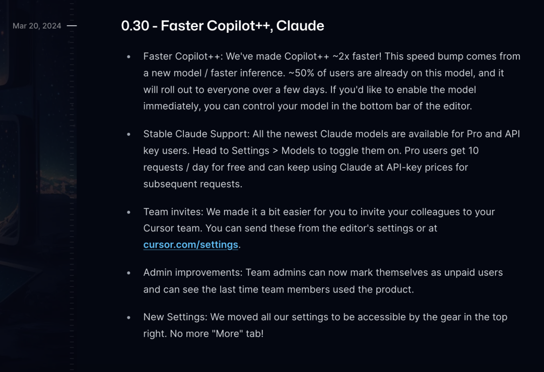 隨着速度的提升,Cursor 整體性能也得到了增強,包括在處理大型文件或複雜代碼庫時的性能,因而順利升級到了 3.0 版本。
