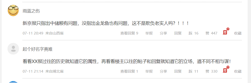 但是呢,在7月初,針對食用油混裝這個事件,引發了那麼多輿論,讓中儲糧、新京報,還有金龍魚都牽扯其中,本來是一個食品安全問題,結果輿論導向走偏,變成了立場問題,變成了外資什麼什麼問題,變成了某報什麼什麼問題……